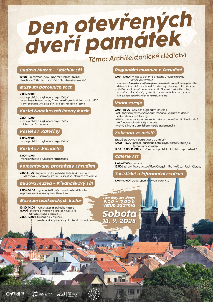 Bude v sobotu 13. září. Otevřeny budou kostely Nanebevzetí Panny Marie, sv. Kateřiny a sv. Michaela. Podrobný program na plakátech.